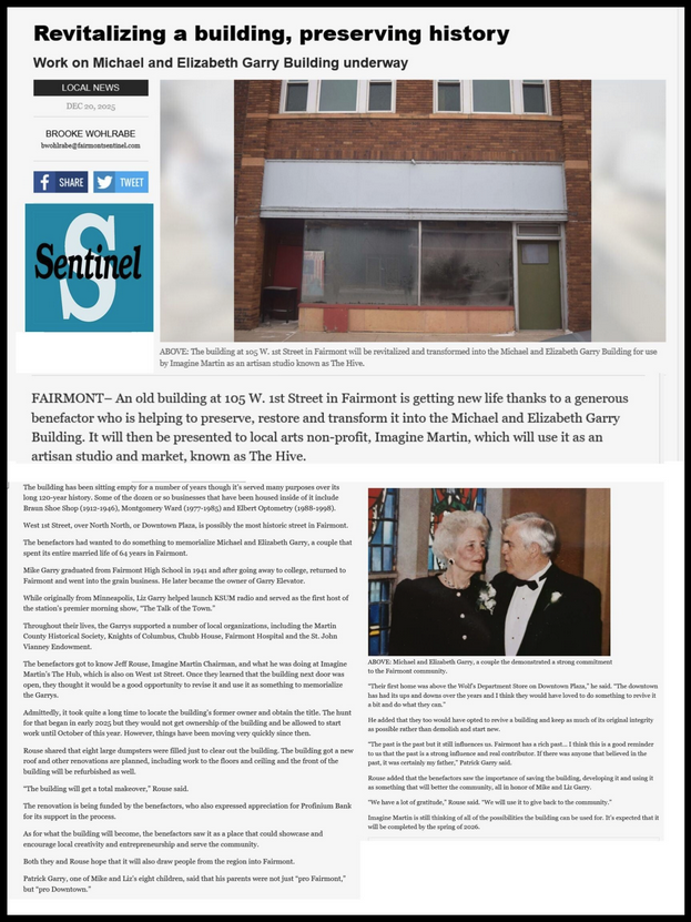 Imagine Martin is honored to carry forward the legacy of the Michael & Elizabeth Garry Building—a space rooted in the Garrys’ generosity, creativity, and deep commitment to community