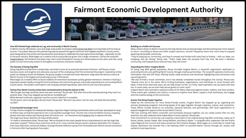 Born from the success of Going Hog Wild in Martin County, a countywide public art project celebrating local businesses, artists, and the region’s rich pork heritage, Imagine Martin has grown into a nonprofit dedicated to enhancing the area as a vibrant arts destination.